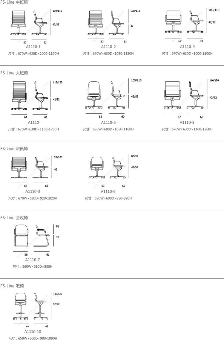 FS-Line 220/82 中班椅 系列尺寸/示意图