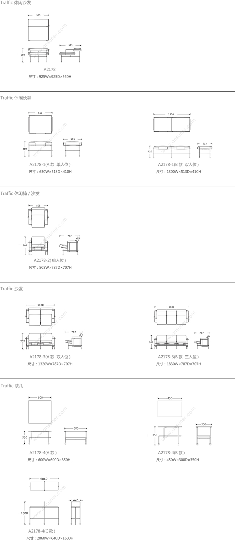 Traffic 系列尺寸/示意图