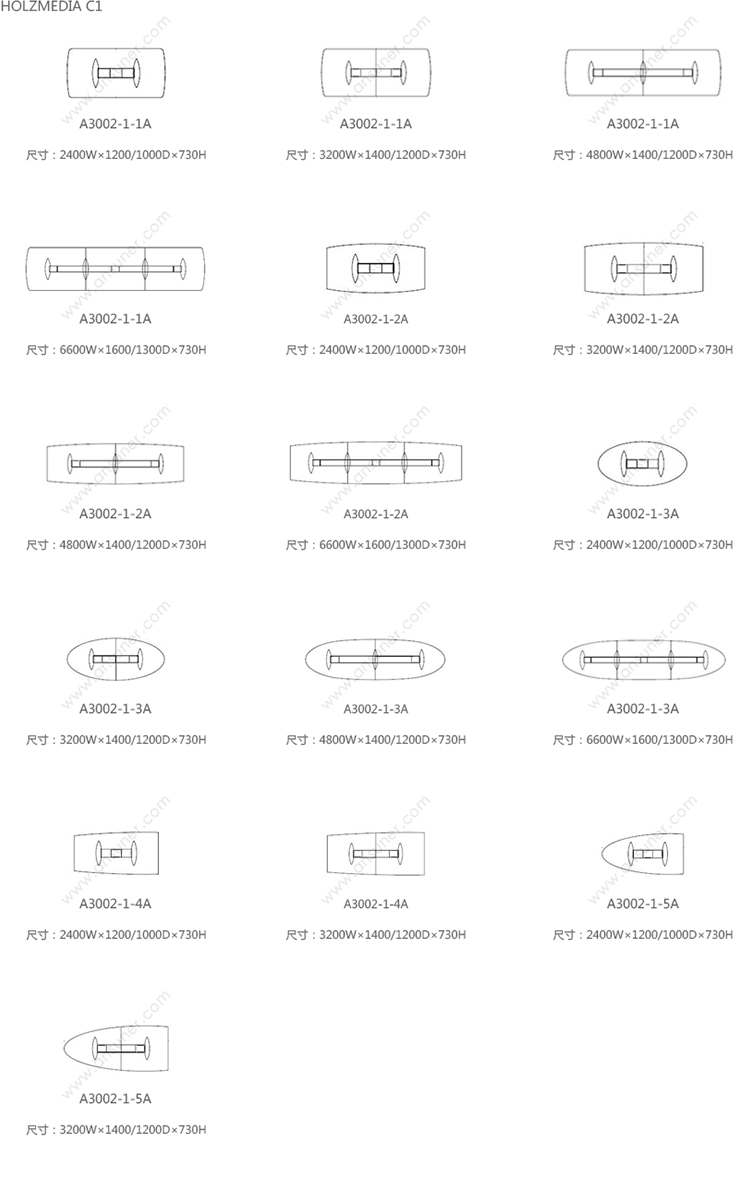 霍尔茨媒体桌 系列尺寸/示意图