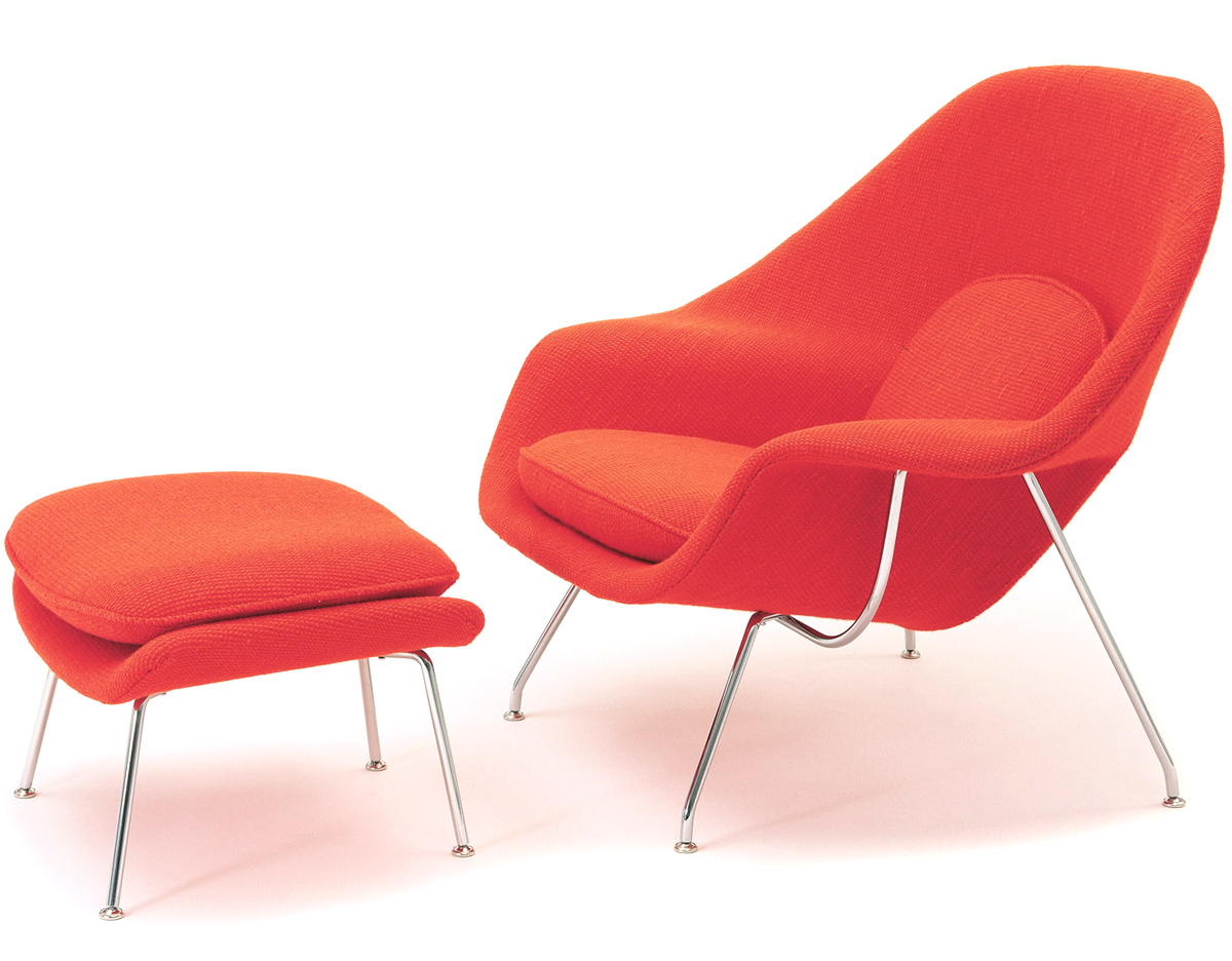Womb Chair 的基本构造是由抛光镀铬或雾面钢管底座,以一体成型的泡棉包覆框架所组成。 Eero Saarinen 设计这张椅子挑战了一般世俗的规则,打破窠臼,树立了新的现代设计和舒适的标准,充分显示他的高超才华。