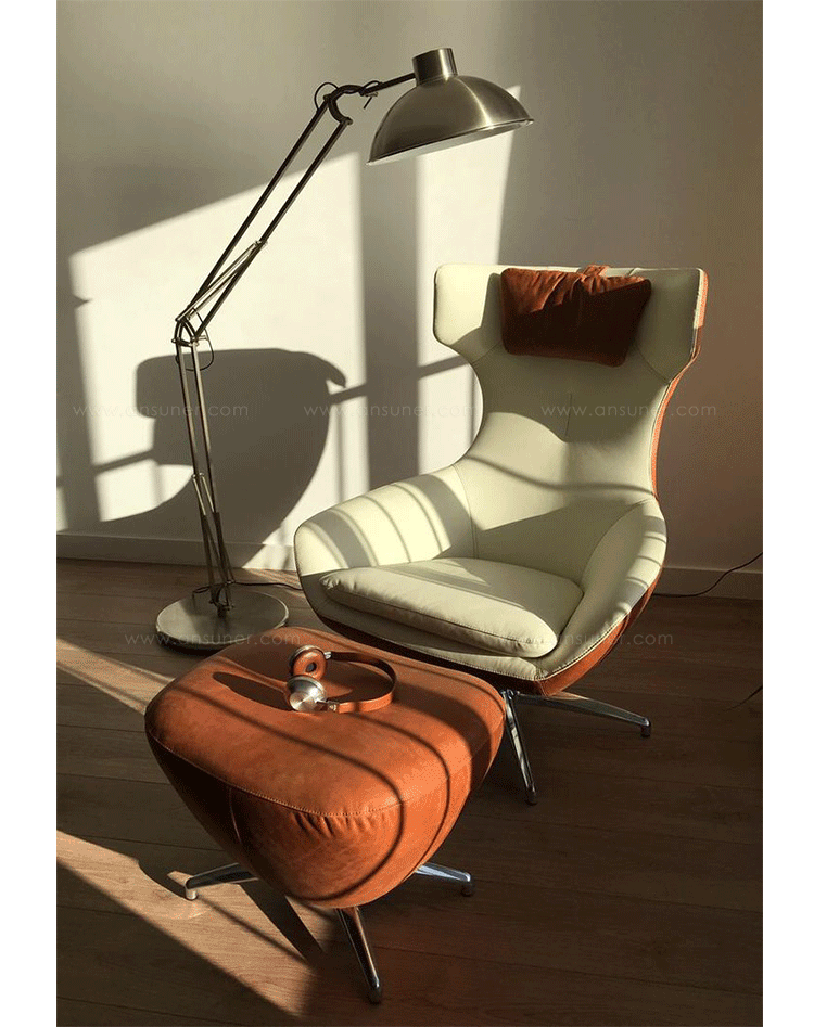 Caruzzo Armchair(Caruzzo扶手椅)是设计大师Frans Schrofer设计的可旋转休闲椅,Frans Schrofer领导他的工作室StudioSchrofer凭借着为Leolux品牌设计的Caruzzo休闲椅获得了2015年红点设计大奖。Caruzzo的高背设计,能够很好的保证你的隐私,同时相当的简约时尚,大方尊贵,精湛的手工制作保证了产品的高品质。设计大量考虑了人体工学,是一款非常舒适的休闲椅,非常值得收藏。制作采用进口玻璃钢压模椅身、进口绒布、软包内部填充进口海绵、五星脚架。