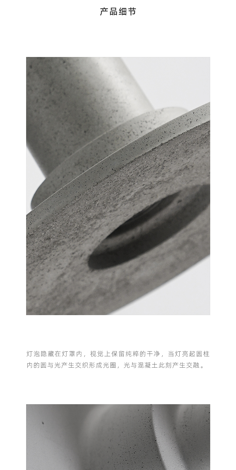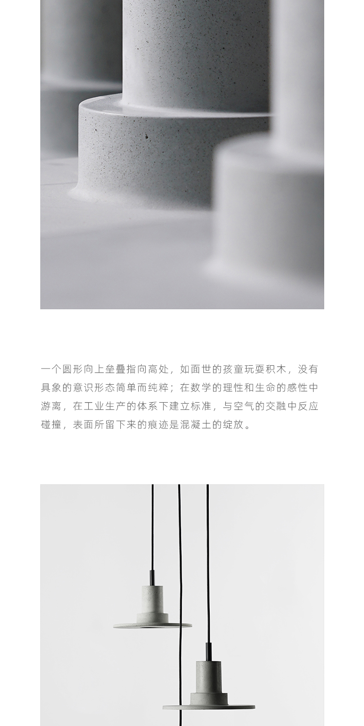 一个圆形向上垒叠指向高处,如面世的孩童玩耍积木,没有具象的意识形态简单而纯粹;在数字的理性和生命的感性中游离,在工业生产的体系下建立标准,与空气的交融中反应碰撞,表面所留下来的痕迹是混凝土的绽放。