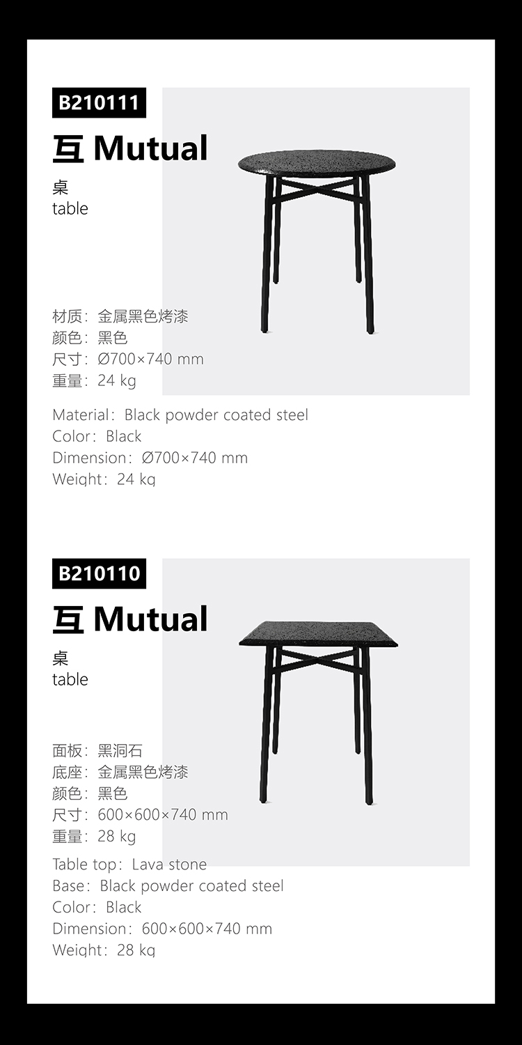 洞黑系列,洞悉秘密,来自地心的喷发。极想把洞石的芳华寂寞倾述出来,呈现于日常并使用它。尝试将洞石塑造各种形态,原材,呈浅灰色;亚光,颜色渐渐加黑;抛光,纯黑了。三种状态,魅力各异。深入践行,洞石的特性愈显,吸音、防水、防火、保温、隔热,耐酸碱、耐腐蚀、耐沾污、耐霉变,且无污染,无放射性。惊喜不断,质量很轻的洞石,居然强度很高,轻、硬,可塑性强,气孔式的通透,赋予了极简中的奢华。触目的拙,爱不释手。