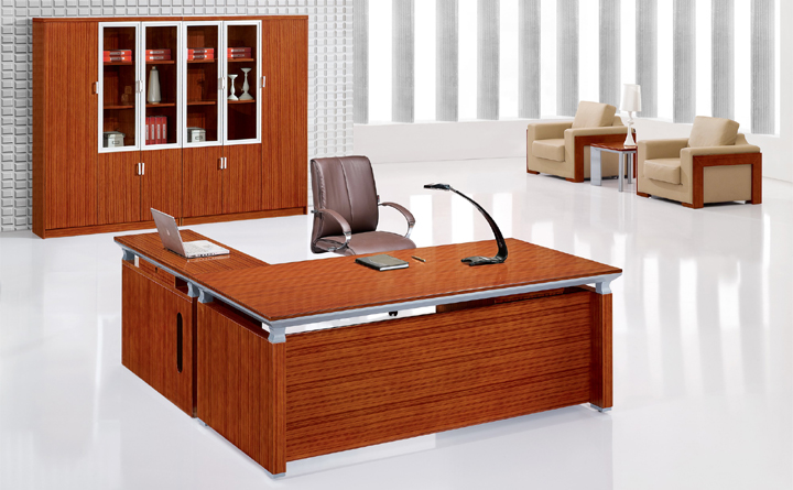 ※  此款班台木纹鲜明,配以银色为点缀,独特的线形设计韵含了一种灵气,使人眼前一亮。多元化的桌面设计能满足您各种组合变换、空间互补的要求。附助储物装置方面则备有流动式矮柜及档柜。