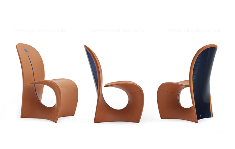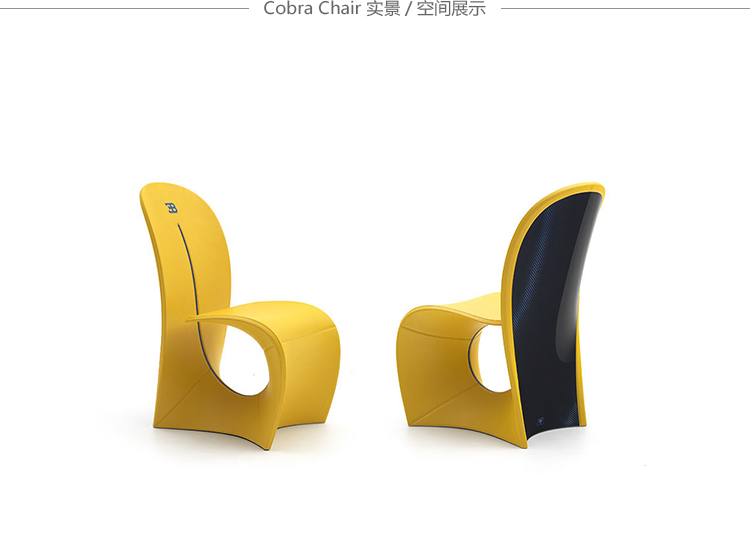 眼镜蛇座椅重现了早期的版本,它是在1902年由Carlo Bugatti设计并完成的。这把椅子是用干邑皮革制成的,有一种蓝色罗亚尔色的碳纤维框架。在蓝色皮革管道和EB字母组合中也有装饰。