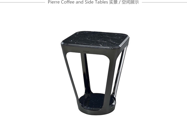 皮埃尔咖啡和侧桌的特点是整体的顶部和框架在减少的厚度。它们有一个外部金属“皮肤”,有大的开放表面和深灰色的表面。这种轻盈,加上稳定性,在表面上很明显,似乎漂浮着,有复杂的地面细节,都是缎质玻璃和珍贵的大理石。