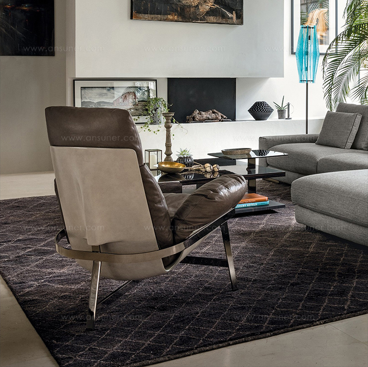 优雅而符合人体工程学的平衡。 动态稳定的温和。建筑配置突出了永恒的外观,并强调了个人使用材料的重要性。木星扶手椅有一个折叠的金属拱结构,由玻璃纤维外壳支撑着,填充的羽毛保证了高水平的舒适感。