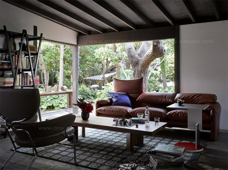采用哑光黑色的珍贵木材或黑色实木橡木或美国黑胡桃木制造的矮桌。桌面厚度和凹面刻画了正式用语中的模型特征,并创造了令人讶异的轻盈感。该款矮桌是于1969年为日本驻巴黎大使馆设计的,这款咖啡桌是技术和中继合成的胜利。