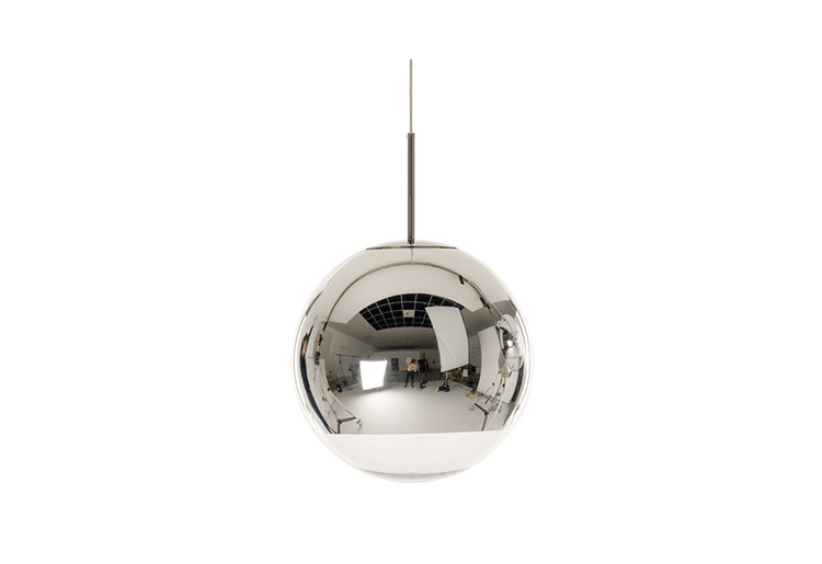"A highly reflective shade inspired by the space helmet. The Mirror Ball is created by exploding a thin layer of pure metal onto the internal surface of a polycarbonate globe. This has become one of the most iconic products in the Tom Dixon collection. Offered in two sizes.The Fat Spot Light was manufactured using a special vacuum metallization process which has been developed over a number of years by Tom Dixon in partnership with their factory. The technically complex nature of this process (i.e applying a very thin layer of real metal to the internal surface of a polycarbonate form, which is then UV coated) requires highly skilled workers, specific machinery and clean environments to meet demanding quality levels. Metalized polycarbonate products must only be stored & installed in temperature controlled environments to preserve the quality of the product. Please take greater care when handling and installing.