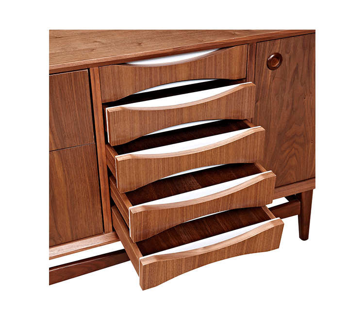 houston sideboard(houston餐具柜)是Kardiel公司制作的经典实木家具,具有世纪中期的现代风格。它如恒星般色彩绚烂,拥有多个隔间以及数吨的存储空间。在现代主义的存储家具上, Finn Juhl和 Arne Vodder 最先尝试胶木和天然木的组合运用。这是大胆的创新,他们结合传统的新鲜的新兴技术与现代主义的概念。制作采用精选MDF板基材胡桃木或水曲柳木皮贴面、胡桃实木或水曲柳实木脚架、环保油漆喷涂、做工精湛,是您理想的选择。
