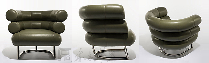 ※ 必比登椅(Bibendum chair )是20世纪最知名的家具设计之一,是艾琳•格蕾(Eileen Gray)1929年设计的,开始并不为世人所知,这情况持续到1972年的一次拍卖会上,从此开始风靡世界。
