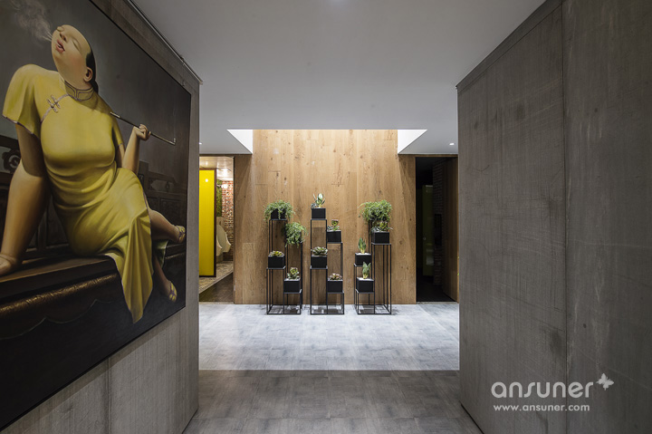 大量原生态木板、绿植墙的采用使整个空间接近原生态,营造出轻松、休闲的办公环境。过去毫无装饰白色承重柱,也被木制进行包裹,演化成了一个参天大树,给人大树底下好乘凉的感觉,树木象征着生长,万物欣欣向荣充满生命力。树枝向天花板伸展开来,一个个树屋垂挂其中将单调天花板加入了自然的生气。